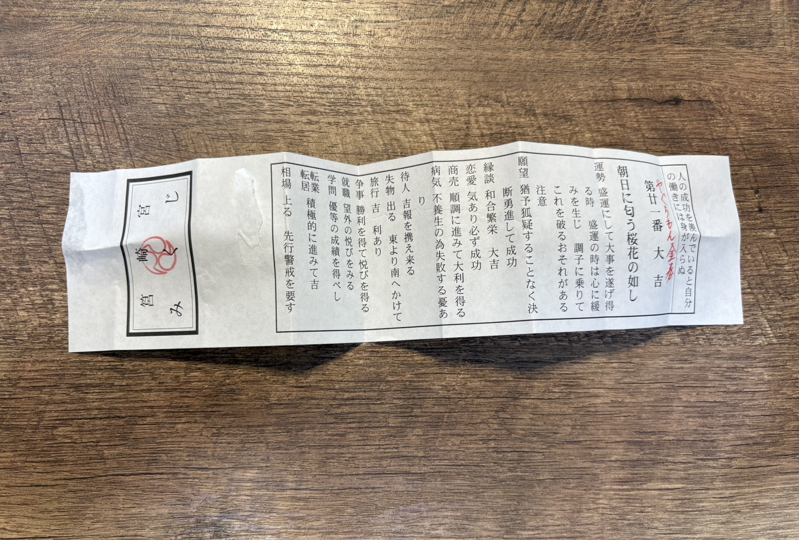 時間があったのでおみくじを引いたら大吉!